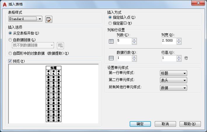 指定表格左上角的位置。可以使用定点设备,也可以在命令提示下输入坐标值。如果表格样式将表格的方向设定为由下而上读取,则插入点位于表格的左下角。