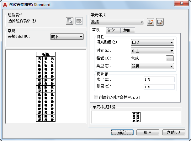 设定文字高度。数据和列标题单元的默认文字高度为 0.1800。表标题的默认文字高度为 0.25。