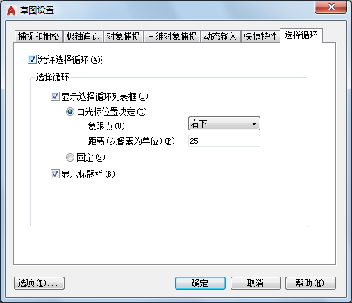 控制选择循环功能是否处于启用状态。(SELECTIONCYCLING 系统变量)。