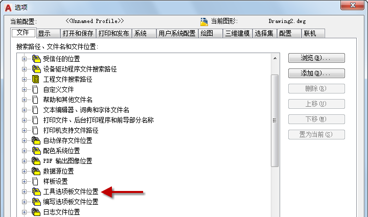 工具选项板文件包含标准工具和用户定义的工具。文件将存储在“工具选项板文件位置”设置指定的位置中。