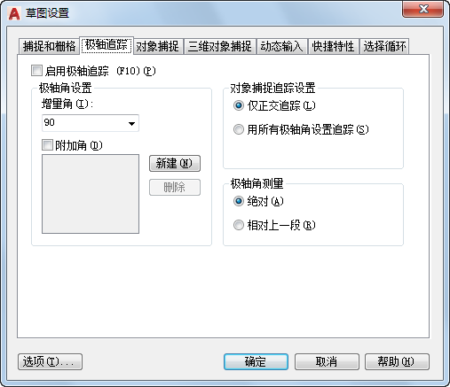设定对象捕捉追踪选项。