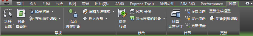 风管对象的上下文选项卡