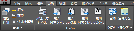 “分析”选项卡包含在当前工作空间中的对象上进行工程计算所需的所有命令。从 HVAC 工作空间到电气和其他工作空间,这些计算工具各不相同。