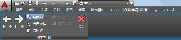 以启动分析。分析完成后,在功能区上找到“在位编辑”选项卡以查看“碰撞检测”面板。