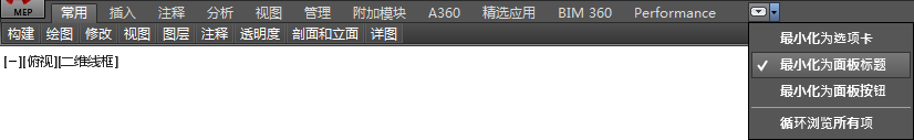 若只要显示功能区选项卡的面板标题,请在功能区的右上角单击