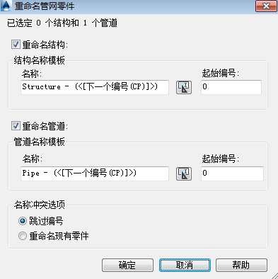您可以选择仅对管道、仅对结构或对管道和结构进行重命名/重新编号。