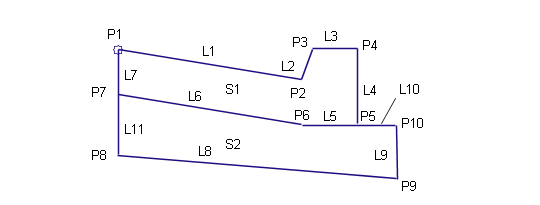 此部件用于生成简单路缘和边沟的造型,附着点位于 (a) 边沟(或边缘)的内侧边缘,或 (b) 路缘的后部。路缘面被指定一个较小的固定宽度,使路缘面为非垂直面。