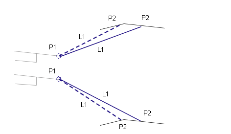 在布局模式中,此部件以向外延伸“最小宽度”距离的虚线显示挖方和填方坡度。边坡连接的终止箭头指向外部。
