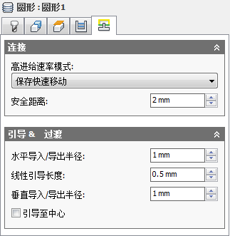 当刀具从进刀移动转到刀具路径本身时垂直弧平滑的半径。