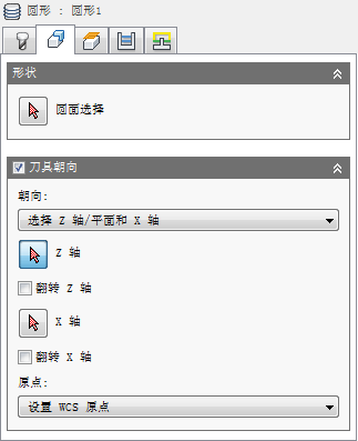 - 设置 WCS 朝向 - 使用当前设置的工件坐标系 (WCS) 来确定刀具朝向。