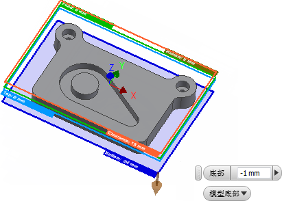 若要确保刀具一直穿过毛坯,请将底部高度降低 1 毫米。