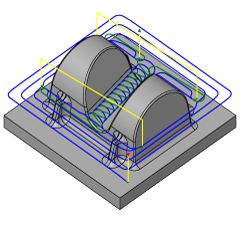 挖槽是用于有效清除大量材料的传统粗加工策略。零件通过平滑的偏移轮廓(保持整个操作过程中顺铣)逐层加工。为避免下刀,刀具沿不同层间的螺旋路径向下斜插。为维持高的进给速率并减小加工时间,可通过平滑刀具运动避免方向的急剧变化。