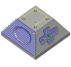 “水平清除”策略可自动检测零件的所有扁平区域,并使用偏移路径将其清除。如果扁平区域高于周边区域,则刀具会移至扁平区域以外清除边缘。使用可选的最大下刀步距时,可以分阶段加工水平面,使水平清除适合于半精加工和精加工。