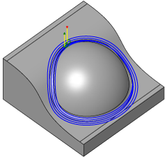 “依外形环切”策略与“环切”策略非常类似。但是,“依外形环切”操作可从选定边界生成环切,而“环切”操作会将生成的加工路径修整到加工边界。这意味着,可对“环切”操作不适用的其他曲面使用“依外形环切”。在加工自由造型/有机曲面时也非常有用。虽然“环绕等距”策略通常用于这些类型的曲面,但锐角和所生成的加工路径之间的连接过渡会导致留下明显的痕迹。“依外形环切”策略通过避免这些问题,一般可提供更平滑的刀具路径。
