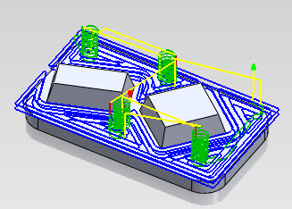 “挖槽清除”可用于加工闭合(凹面)和开放式(核心)挖槽。默认情况下,“挖槽清除”在闭合挖槽模式下运行。您可以通过将加工边界设置为“无”或选择“毛坯轮廓”启用开放式挖槽模式。