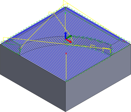 选择该选项后,将生成两个平行操作;一个沿指定的加工路径方向,另一个垂直于该方向(旋转 90 度)。然后,将修整这两个方向,以便对于任何指定区域,将仅保留跨过陡峭区域进行加工的方向。
