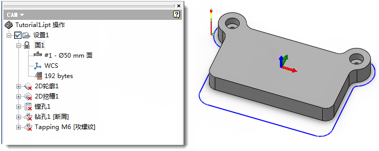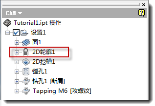 “2D 轮廓 1”操作受到保护并显示有挂锁图标