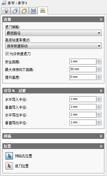 系统提供了一个分阶段向下切削至水平面的选项,这意味着,该策略是粗加工和精加工策略的组合。
