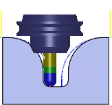 Inventor HSM 中的 3D 策略完全支持用户定义的轴和夹头。在使用带夹头的刀具时,您可以根据加工策略在五种不同的轴和夹头模式之间选择一种模式。可以对刀具的轴和夹头执行碰撞处理,并且可以为它们提供不同的间隙。