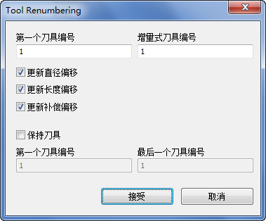 “刀具重新编号”对话框