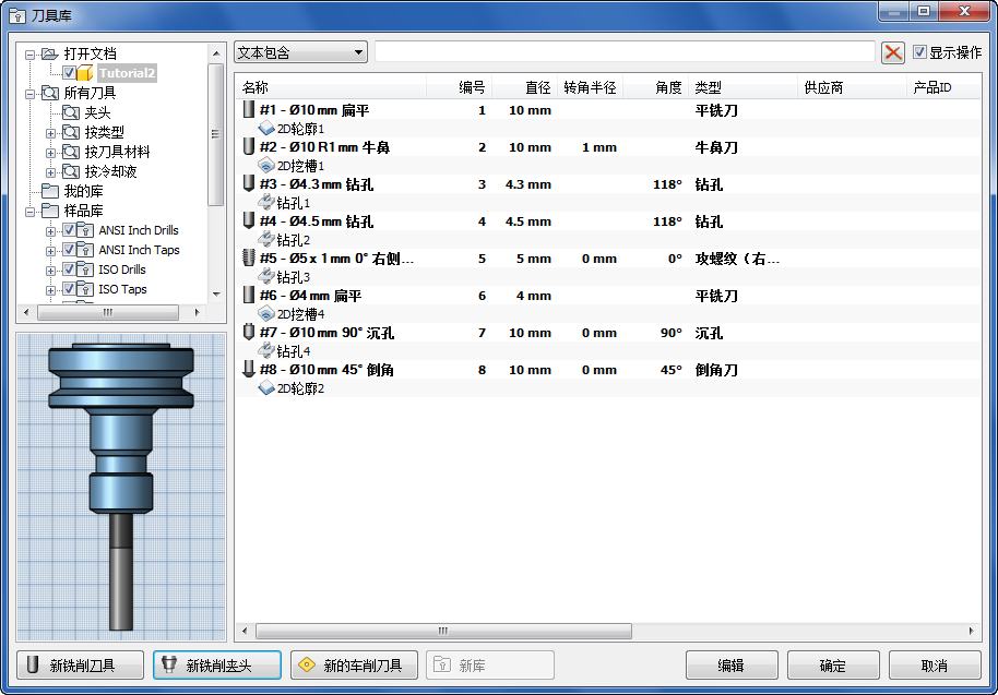 刀具将按照它们当前在 CAM 浏览器中的使用顺序进行编号,并且起始编号为 1。