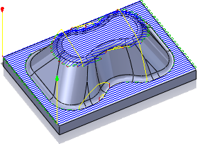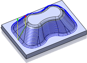 Inventor HSM 中的大多数 3D 精加工策略都支持斜坡范围。因为某些策略更适合于加工浅平面区域(例如平行精加工),而有些策略更适合于加工陡峭区域(例如轮廓精加工),所以该功能非常有用。