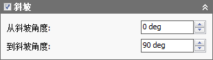 斜坡范围可通过在“形状”选项卡中的“斜坡”部分设置“起始斜坡角度”和“结束斜坡角度”参数来进行指定。