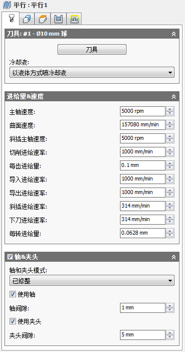 定义在启用“加工陡峭面区域”时使用的最小步距(不管下刀步距量为多少)。