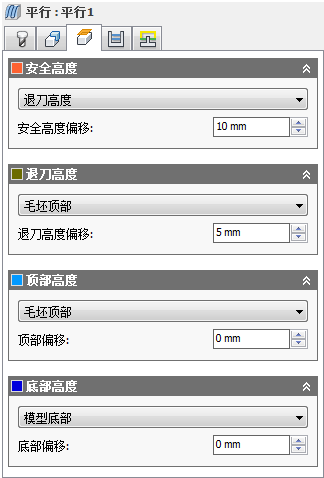 “退刀高度偏移”将会应用,并且与在上述下拉列表中选择的“退刀高度”有关。