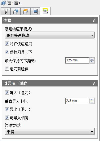指定在加工路径之间进行连接的类型。