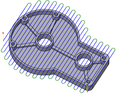 对于不完全水平的曲面,Inventor HSM 会在轴向和径向(壁)加工余量值之间插值,因此在这些曲面的轴向方向上剩余的毛坯量可能不同于指定的值,具体取决于曲面坡度和径向加工余量值。