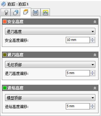 “退刀高度偏移”将会应用,并且与在上述下拉列表中选择的“退刀高度”有关。