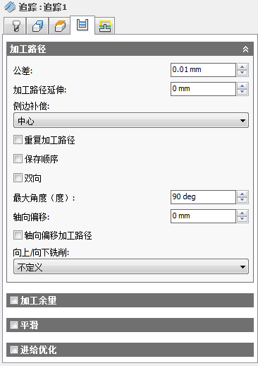 当公差(生成原始线性化路径时使用的精度)等于或大于平滑(直线圆弧拟合)公差时,平滑效果最佳。