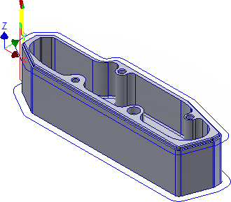 以关闭“刀具库”对话框。 若要围绕零件的外侧轮廓进行加工,请从模型中选择一连串边。