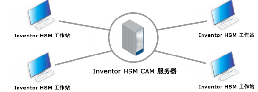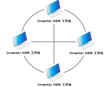 分布式 CAM 使您可以更高效地利用工作站。您可以通过不同的配置使用分布式 CAM,如下图所示。