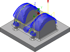 注: 在 0 度(水平)和与水平面成 65 度角的范围内进行加工,可确保在此操作与陡峭面区域上的上一操作之间的过渡区域中没有多余的材料,并且刀具会从已加工的区域内开始加工。