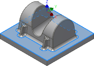 为了避免加工零件的平底座,我们可以选择它作为避开曲面。若要了解详细信息,请参见 Inventor HSM 帮助主题:关于避让表面。