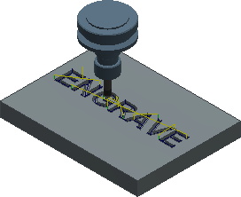 使用“轮廓选择”按钮可选择要进行雕刻的形状轮廓。邻近的形状会自动连接在一起。“雕刻”加工策略会沿选定的轮廓在中间位置行进,以使倒角刀具接触到选定边。刀具会随切削区域宽度的变化而上下移动。