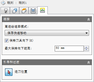 禁用:禁用“进给高度”会导致刀具向下快速移动为导入。