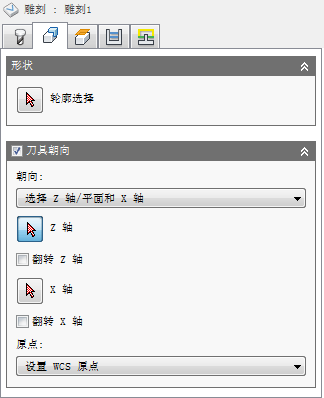 设置 WCS 朝向 - 使用当前设置的工件坐标系 (WCS) 来确定刀具朝向。