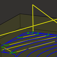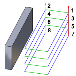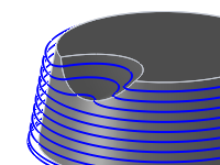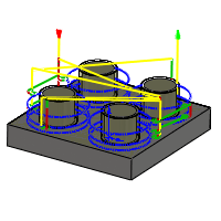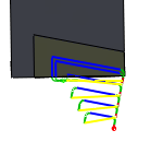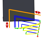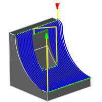 对于多个轮廓的情况来说,执行此排序后,将首先进入具有最小 Z 层刀具朝向的加工路径来通过一次操作完成加工。在加工像石墨等脆性材料时,该方法非常有用。