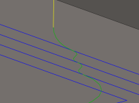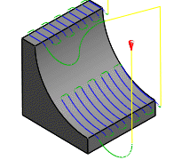 指定在曲面的陡峭面垂直于加工方向的位置添加额外加工路径。该选项对于切削方向需要保持一致以避免在零件上留下痕迹的注塑模具非常重要。
