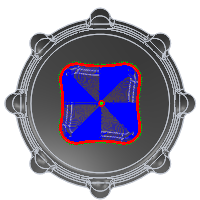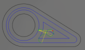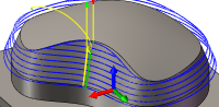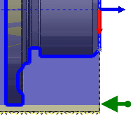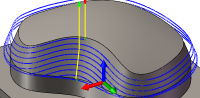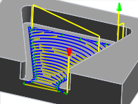 对于不完全水平的曲面,Inventor HSM 会在轴向和径向(壁)加工余量值之间插值,因此在这些曲面的轴向方向上剩余的毛坯量可能不同于指定的值,具体取决于曲面坡度和径向加工余量值。