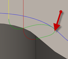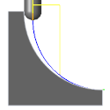 当使用负径向加工余量大于转角半径的球头刀具或半径刀具时,负轴向加工余量必须小于或等于转角半径。
