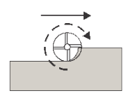 逆铣通常在手动机床上使用,因为在进行顺铣切削时机床导螺杆中的背隙会导致刀具摇晃。而这在 CNC 机床上不是问题,因为此类机床使用滚珠螺杆。