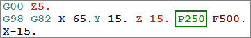 当后处理钻孔循环时,可以将停留时间指定为钻孔循环参数之一(通常为 P),并且在大多数情况下是以毫秒 (ms) 为单位的输出。