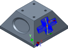 使用“挖槽清除”刀具路径在与椭圆形特征相邻的面上清除十字形的挖槽。