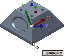 - 确保“刀具朝向原点”按钮处于激活状态,并选择零件左下角的点,如下图所示: