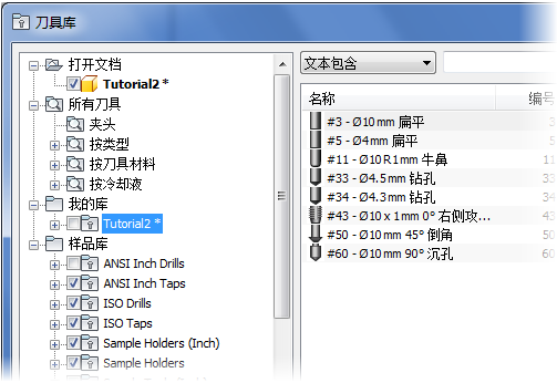 注: 如果您导出到其他文件夹,那么库在“刀具库”对话框中不可见,除非您在库对话框中添加该文件夹。您仍然可以使用“从库导入刀具”选项从库中导入刀具。