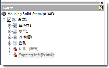 操作被抑制并且显示警告消息时,会清除有效的刀具路径。抑制的操作现在以暗显的灰色显示在 CAM 浏览器中,并且通过一个小的红色“x”指示刀具路径无效。